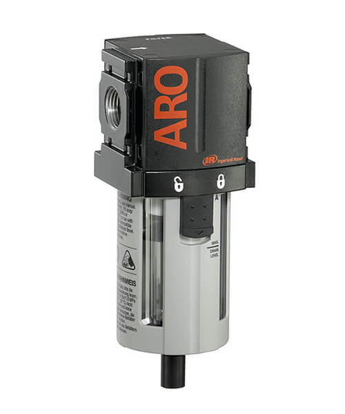 Os filtros de ar comprimido ARO-Flo são projetados para remover contaminantes sólidos e líquidos que estão no ar. Os filtros podem ser encomendados com diferentes elementos, incluindo modelos coalescentes que podem remover aerossóis e partículas de até 0,3 μm. Os filtros padrão são vendidos com elementos de 5 μm; Elementos de 40 μm podem ser adquiridos e instalados separadamente.
