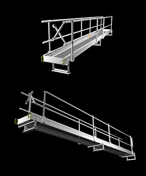 Spandeck é uma ponte de passadiço em alumínio de peso reduzido, plataforma de trabalho e sistema de andaimes numa unidade versátil. Graças ao seu design único reversível e aos ganchos de lado duplo, o Spandeck pode ser utilizado individualmente como um passadiço ou lado a lado como um andaime. Uma construção de liga de alumínio de resistência elevada garante o peso reduzido do Spandeck e não necessita de manutenção, enquanto que os rodapés integrais fazem com que seja utilizado de forma segura como passadiço. Os pilares da barreira de proteção e as barreiras de proteção estão montados de forma a proporcionarem um ambiente de trabalho seguro.